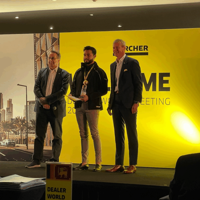KK Power receiving an award for their long term partnership with Karcher.